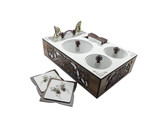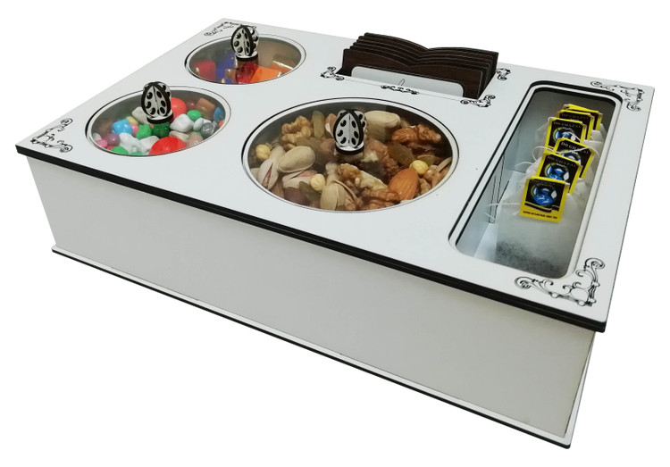 جعبه پذیرایی مدل پروانه، دارای 4 ظرف جداگانه جهت قرارگیری انواع خوراک خشک مورد علاقه شما برروی میزپذیرایی از میهمانان عزیز شماست!