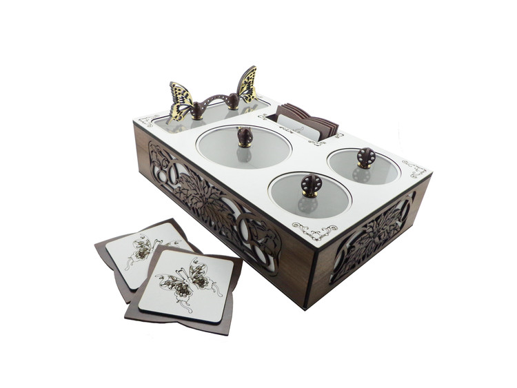 جعبه پذیرایی مانا مدل پروانه همراه با زیرلیوانی