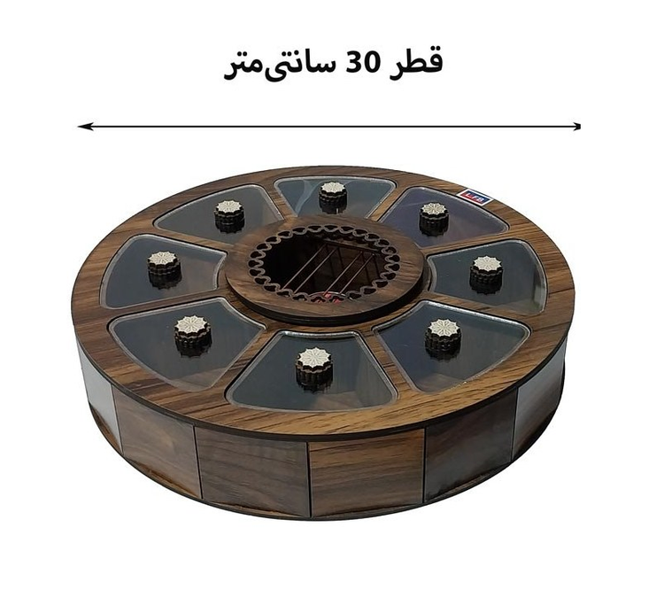 امکانات: دارای 8 خانه مجزا برای نگهداری چای کیسهای، دمنوش، تنقلات، قند یا شکلات